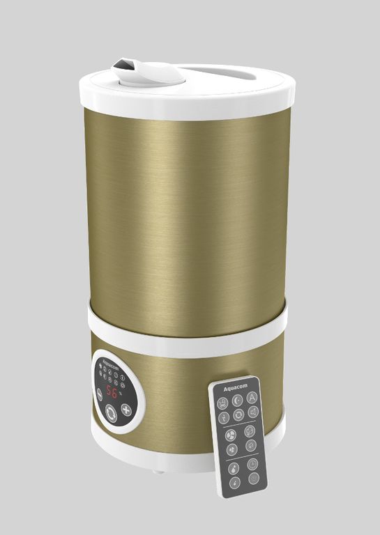 Aquacom очень прост в эксплуатации, экономичный и достаточно компактный. При своих скромных габаритах имеет шестилитровый резервуар и потребляет от 35 до 80 Вт (меньше лампочки), в то же время для сравнения не самый мощный паровой увлажнитель, имея почти в два раза меньший объем резервуара, потребляет от 300 до 600 Вт. К тому же, за счет вертикального дизайна прибор занимает совсем немного места.